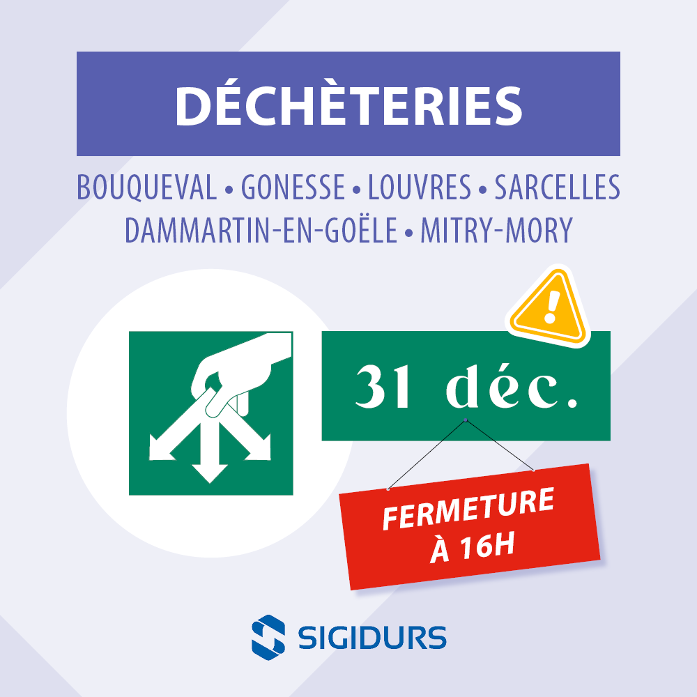 - Fermetures exceptionnelles des 6 déchèteries à 16h les 24 et 31 décembre.