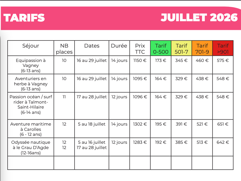 Au programme : surf sur la côte atlantique, aventures en montagne, activités nautiques, grands jeux, veillées et projets collectifs. Chaque séjour est conçu pour offrir bien plus que des vacances : une véritable expérience de vie, favorisant l’autonomie, le partage et l’ouverture aux autres