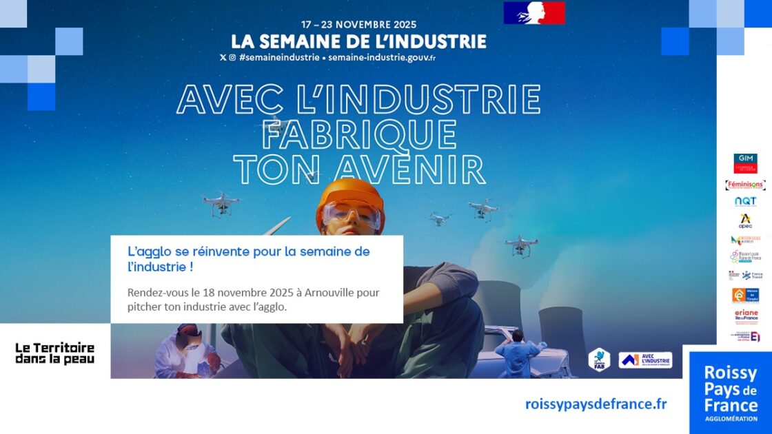 La communauté d’agglomération Roissy Pays de France organise, dans le cadre de la Semaine de l’industrie, un temps fort dédié aux perspectives du secteur industriel, le mardi 18 novembre à partir de 13h30, à la salle Charles Aznavour à Arnouville. L’évènement est accessible sur inscriptions aux personnes en demande d’emploi, en reconversion ou en recherche d’alternance.