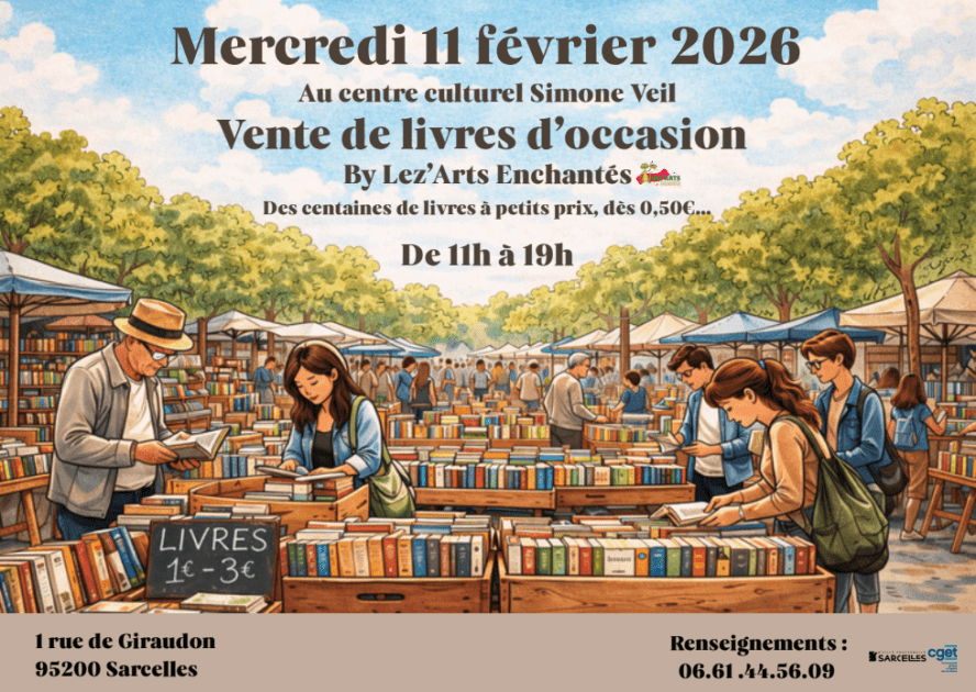 L’association Léz’Arts enchantés organise une vente de livres d’occasion ouverte à toutes et tous, le mercredi 11 février 2026, de 11h à 19h, au Centre culturel Simone Veil à Sarcelles.