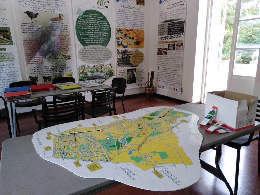 - Une salle au rez-de-chaussée : elle abrite une maquette du Grand Ensemble, une fresque chronologique sur les migrations à Sarcelles et un triptyque retraçant l’évolution architecturale et sociale de la ville.