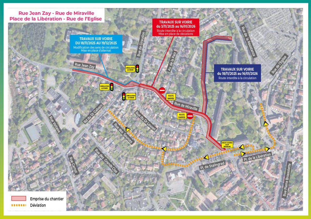 - Durant les travaux, l’accès à la Mairie et aux commerces est maintenu.